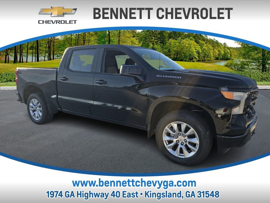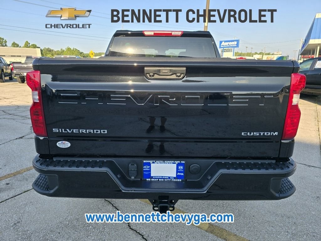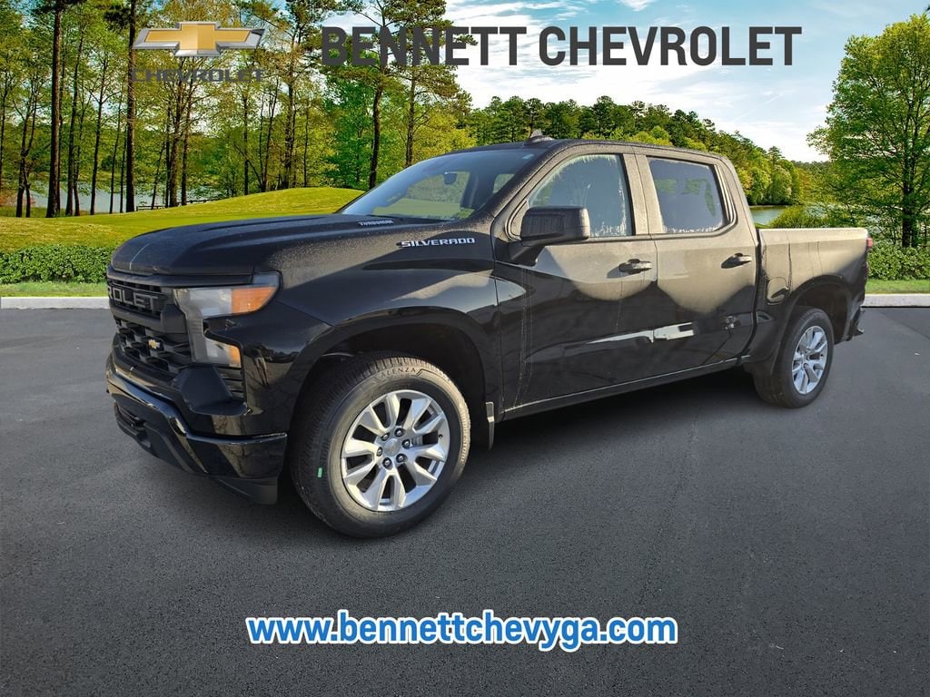 Black 2025 Chevrolet Silverado 1500 Custom 4WD 8-Speed Automatic 2.7L I4 Turbocharged DOHC 16V LEV3-SULEV30 310hp 8-Speed Automatic, 4WD, Jet Black Cloth.