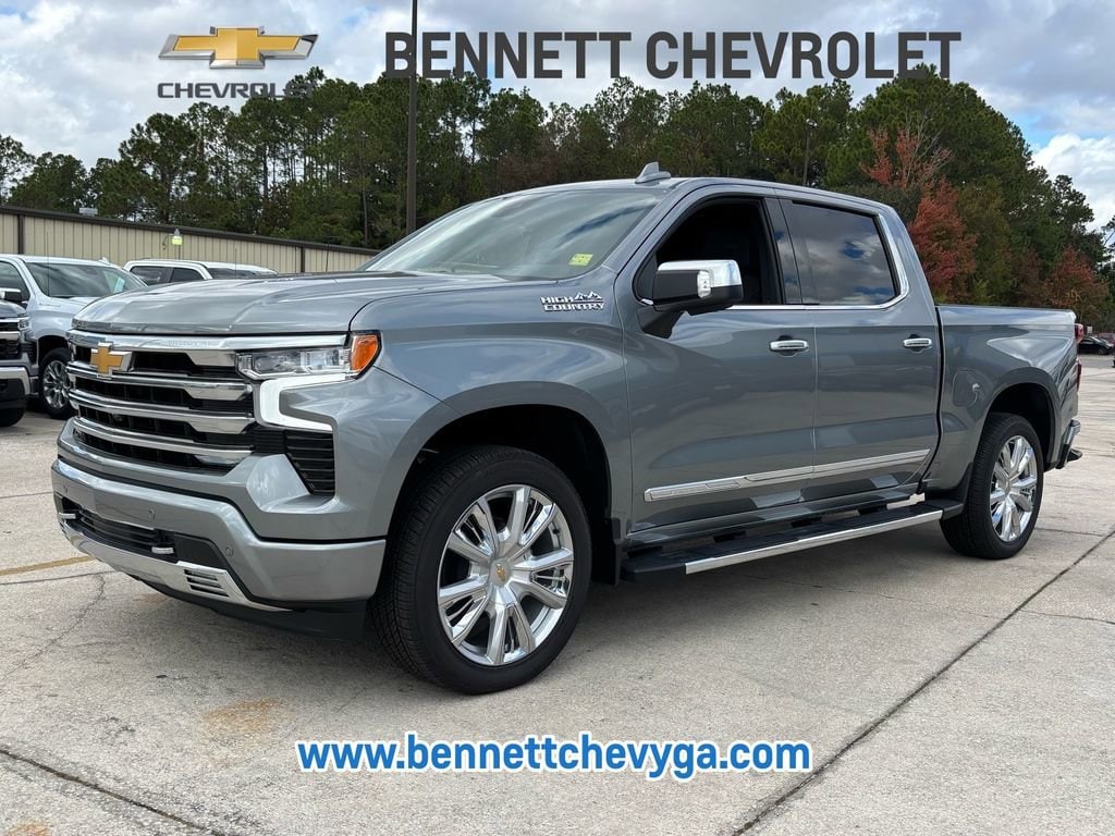 Sterling Gray Metallic 2025 Chevrolet Silverado 1500 High Country 4WD 10-Speed Automatic EcoTec3 6.2L V8 10-Speed Automatic, 4WD, Black Leather.