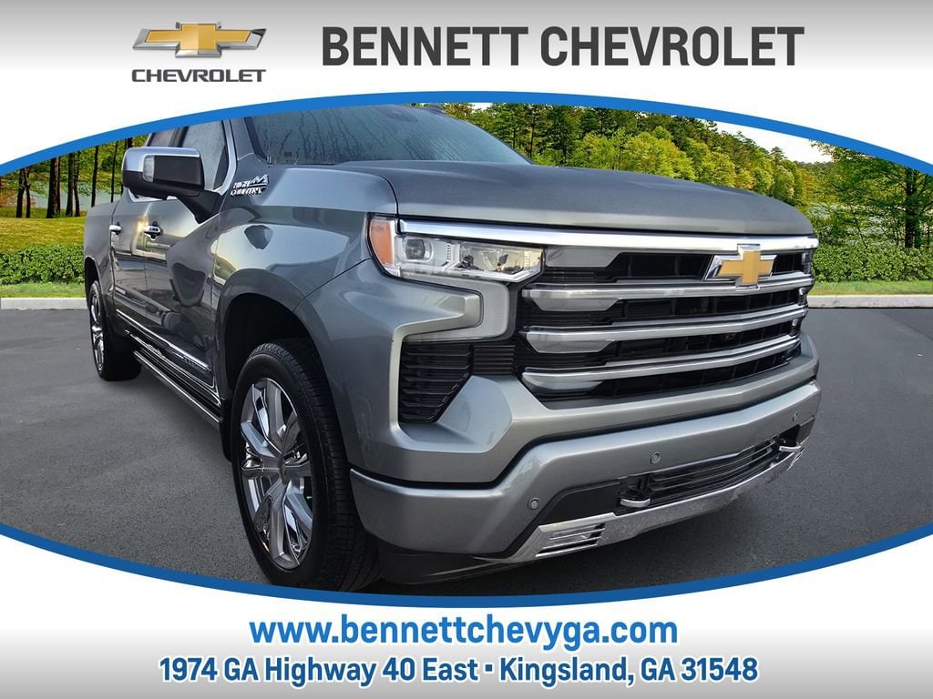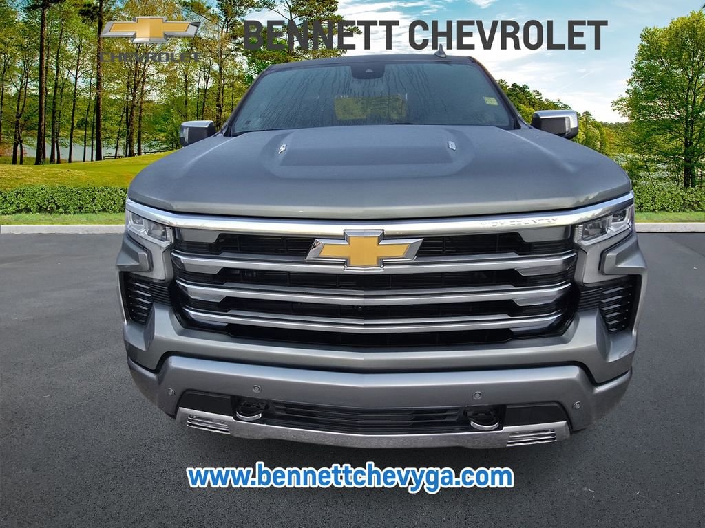 Sterling Gray Metallic 2025 Chevrolet Silverado 1500 High Country 4WD 10-Speed Automatic EcoTec3 6.2L V8 10-Speed Automatic, 4WD, Blue Leather.