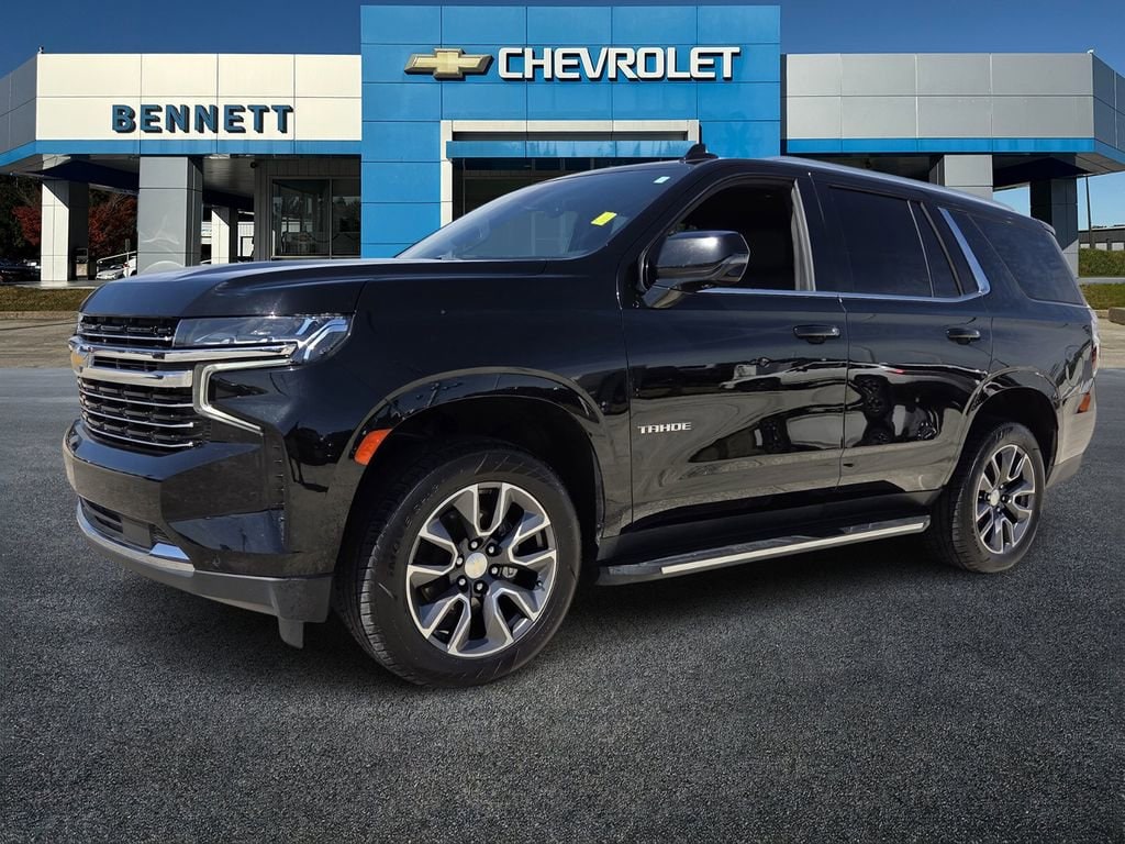 Bennett Chevrolet Buick is very proud to offer this attractive-looking 2021 Chevrolet Tahoe in Black This vehicle has passed our comprehensive inspection and comes with the following Driver Alert Package (Front & Rear Park Assist, Lane Change Alert w/Side Blind Zone Alert, Lane Keep Assist w/Lane Departure Warning, and Rear Cross Traffic Alert), License Plate Front Mounting Package, Luxury Package (2nd Row Pwr Release 60/40 Split-Folding Bench Seat, 3rd Row 60/40 Power-Folding Split-Bench Seat, Automatic Heated Steering Wheel, HD Surround Vision, Heated 2nd Row Outboard Seats, Memory Settings, Outside Heated Power-Adjustable Mirrors, Power Tilt & Telescopic Steering Column, and Rear Pedestrian Alert), Preferred Equipment Group 1LT (1st & 2nd Row Color-Keyed Carpeted Floor Mats, 2 USB Data Ports, Auto-Dimming Inside Rear-View Mirror, Bright Front & Rear Door Sill Plates, Color-Keyed Carpeting Floor Covering, Driver & Front Outboard Passenger Airbags, Floor Console w/Storage Area, Hands-Free Rear Power Programmable Liftgate, HD Radio, Infotainment Display, Leather-Wrapped Steering Wheel, LED Daytime Running Lamps, Memory Settings for Driver, Remote Start, SiriusXM Radio w/360L, and Universal Home Remote), Leather, 10-Way Power Driver & Passenger Seat Adjusters, 3.23 Rear Axle Ratio, 3rd row seats: split-bench, 4-Wheel Disc Brakes, 9 Speakers, ABS brakes, Air Conditioning, Alloy wheels, AM/FM radio: SiriusXM with 360L, Apple CarPlay/Android Auto, Auto High-beam Headlights, Auto-dimming Rear-View mirror, Automatic temperature control, Bose 9-Speaker Stereo Audio System Feature, Brake assist, Bumpers: body-color, Compass, Delay-off headlights, Driver door bin, Driver vanity mirror, Dual front impact airbags, Dual front side impact airbags, Electronic Stability Control, Emergency communication system: OnStar and Chevrolet connected services capable, Four wheel independent suspension, Front anti-roll bar, Front Bucket Seats, Front Center Armrest, Front dual zone A/C, Front High-Back Reclining Bucket Seats, Front reading lights, Fully automatic headlights, Garage door transmitter, Heated door mirrors, Heated Driver & Front Passenger Seats, Heated front seats, Illuminated entry, Leather Seat Trim, Leather steering wheel, Low tire pressure warning, Memory seat, Occupant sensing airbag, Outside temperature display, Overhead airbag, Overhead console, Panic alarm, Passenger door bin, Passenger vanity mirror, Power door mirrors, Power driver seat, Power Liftgate, Power passenger seat, Power Release 2nd Row Bucket Seats, Power steering, Power windows, Premium audio system: Chevrolet Infotainment 3, Premium Smooth Ride Suspension, Radio: Chevrolet Infotainment 3 Plus System, Rain sensing wipers, Rear air conditioning, Rear anti-roll bar, Rear reading lights, Rear seat center armrest, Rear window defroster, Rear window wiper, Remote keyless entry, Roof rack: rails only, Security system, Speed control, Speed-sensing steering, Split folding rear seat, Spoiler, Steering wheel mounted audio controls, Tachometer, Telescoping steering wheel, Tilt steering wheel, Traction control, Trip computer, Variably intermittent wipers, Voltmeter, Wheels: 18 x 8.5 Bright Silver Painted Aluminum, and Wheels: 20 x 9 Painted Aluminum; Leather.Awards:* JD Power Automotive Performance, Execution and Layout (APEAL) Study * ALG Residual Value
