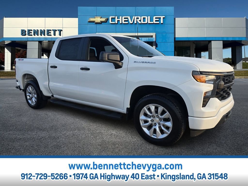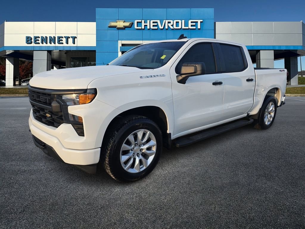 Bennett Chevrolet Buick is pumped up to offer this stout 2024 Chevrolet Silverado 1500 in Summit White This vehicle has passed our comprehensive inspection and comes with the following Custom Convenience Package (Electric Rear-Window Defogger, EZ Lift Power Lock & Release Tailgate, LED Cargo Area Lighting, Remote Vehicle Starter System, and Theft Deterrent System (Unauthorized Entry)), Custom Value Package, High Capacity Suspension Package, Preferred Equipment Group 1CX (10-Way Power Driver Seat w/Lumbar, 120-Volt Bed Mounted Power Outlet, 120-Volt Interior Power Outlet, 3.5 Monochromatic Display Driver Info Center, Bluetooth® For Phone, Chevrolet Connected Access Capable, Color-Keyed Carpeting Floor Covering, Deep-Tinted Glass, Dual Rear USB Ports (Charge Only), Electrical Steering Column Lock, Electronic Cruise Control, Front Frame-Mounted Black Recovery Hooks, Front Rubberized Vinyl Floor Mats, HD Rear Vision Camera, Manual Tilt Wheel Steering Column, OnStar & Chevrolet Connected Services Capable, Power Front Windows w/Driver Express Up/Down, Power Front Windows w/Passenger Express Down, Power Rear Windows w/Express Down, Rear 60/40 Folding Bench Seat (Folds Up), Rear Rubberized-Vinyl Floor Mats, Remote Keyless Entry, SiriusXM Radio, Standard Tailgate, and Wi-Fi Hot Spot Capable), Trailering Package (Hitch Guidance), 8-Speed Automatic, 4WD, Black Cloth, 3.42 Rear Axle Ratio, 4-Wheel Disc Brakes, 40/20/40 Front Split-Bench Seat, 6 Speakers, 6-Speaker Audio System, ABS brakes, Air Conditioning, Alloy wheels, AM/FM radio: SiriusXM, Auto High-beam Headlights, Automatic Emergency Braking, Brake assist, Bumpers: body-color, Chevytec Spray-On Black Bedliner, Cloth Seat Trim, Compass, Delay-off headlights, Driver door bin, Driver vanity mirror, Dual front impact airbags, Dual front side impact airbags, Electronic Stability Control, Following Distance Indicator, Forward Collision Alert, Front anti-roll bar, Front Center Armrest w/Storage, Front Pedestrian Braking, Front reading lights, Front wheel independent suspension, Fully automatic headlights, Heated door mirrors, Illuminated entry, IntelliBeam Automatic High Beam On/Off, Lane Keep Assist w/Lane Departure Warning, Low tire pressure warning, Occupant sensing airbag, Outside temperature display, Overhead airbag, Overhead console, Panic alarm, Passenger door bin, Passenger vanity mirror, Power door mirrors, Power driver seat, Power steering, Power windows, Premium audio system: Chevrolet Infotainment 3, Radio data system, Radio: Chevrolet Infotainment 3 System, Rear reading lights, Rear step bumper, Rear window defroster, Remote keyless entry, Security system, Single Outlet Exhaust, Speed control, Speed-sensing steering, Split folding rear seat, Tachometer, Tilt steering wheel, Traction control, Trip computer, Variably intermittent wipers, Voltmeter, and Wheels: 20 x 9 Bright Silver Painted Aluminum; 8-Speed Automatic, 4WD, Black Cloth.