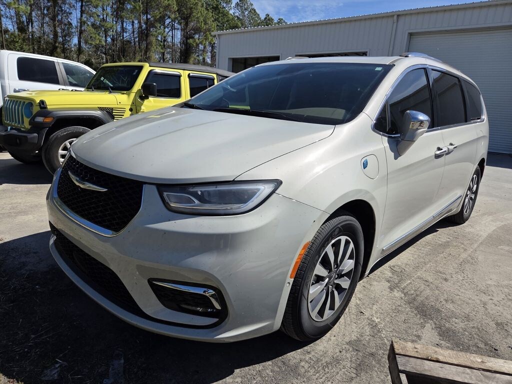 Bennett Chrysler Jeep Dodge Ram is very proud to offer this charming 2021 Chrysler Pacifica Hybrid in Luxury White Pearlcoat This vehicle has passed our comprehensive inspection and comes with the following Premium & Safety Sphere Group (20 harman/kardon Speakers, 360 Surround View Camera System, 760 Watt Amplifier, Parallel & Perp Park Assist w/Stop, and ParkSense Front/Rear Park Assist w/Stop), Quick Order Package 2EP, Uconnect Theater Family Group (115V Auxiliary Power Outlet, 3-Channel Video Remote Control, 3-Channel Wireless Headphones (RF), Blu-Ray/DVD Player/USB Port, Famcam Interior Camera, High Definition Multimedia Interface, KeySense, Seatback Video Screens, and Video USB Port), 3.6L V6, 10.1" Touchscreen Display, 13 Speakers, 3.59 Axle Ratio, 3rd row seats: split-bench, 4-Wheel Disc Brakes, ABS brakes, Air Conditioning, Alloy wheels, AM/FM radio: SiriusXM 360L, Apple CarPlay, Apple CarPlay/Android Auto, Audio memory, Auto Adjust In Reverse Exterior Mirrors, Auto-dimming door mirrors, Auto-Dimming Exterior Driver Mirror, Auto-dimming Rear-View mirror, Automatic temperature control, Bodyside moldings, Brake assist, Bumpers: body-color, Chrome/Body Color Exterior Mirrors, Compass, Deep Mocha Seats, Delay-off headlights, Disassociated Touchscreen Display, Driver door bin, Driver vanity mirror, Driver's Seat Mounted Armrest, Dual front impact airbags, Dual front side impact airbags, Electronic Stability Control, Emergency communication system: Uconnect Access, Exterior Mirrors Courtesy Lamps, Exterior Mirrors w/Heating Element, Exterior Mirrors w/Memory, Exterior Mirros w/Supplemental Signals, Four wheel independent suspension, Front anti-roll bar, Front Bucket Seats, Front dual zone A/C, Front fog lights, Front reading lights, Fully automatic headlights, Garage door transmitter, Google Android Auto, GPS Antenna Input, GPS Navigation, HD Radio, Heated door mirrors, Heated front seats, Heated steering wheel, Heavy Duty Suspension, Illuminated entry, Instrument Panel Satin Silver Bezel, Integrated Center Stack Radio, Integrated Voice Command w/Bluetooth, Knee airbag, Leather steering wheel, Low tire pressure warning, Memory seat, Navigation System, Occupant sensing airbag, Outside temperature display, Overhead airbag, Overhead console, Panic alarm, ParkView Rear Back-Up Camera, Passenger door bin, Passenger seat mounted armrest, Passenger vanity mirror, Power door mirrors, Power driver seat, Power Liftgate, Power Open/Close Shade, Power passenger seat, Power steering, Power windows, Premium Leather Trim Bucket Seats, Radio data system, Radio: Uconnect 5 Nav w/10.1" Display, Rain sensing wipers, Rear air conditioning, Rear reading lights, Rear window defroster, Rear window wiper, Reclining 3rd row seat, Remote keyless entry, Roof rack, Security system, Silver Metal Brushed Hydro Accents, SiriusXM Guardian - Included Trial (B), SiriusXM Satellite Radio, SiriusXM w/360L, Speed control, Split folding rear seat, Spoiler, Steering wheel mounted audio controls, Tachometer, Telescoping steering wheel, Tilt steering wheel, Traction control, Tri Pane Panoramic Sunroof (DISC), Trip computer, Turn signal indicator mirrors, USB Host Flip, Variably intermittent wipers, Ventilated front seats, Voltmeter, and Wheels: 17" x 7.0" Diamond Cut w/Painted Pockets; 3.6L V6.