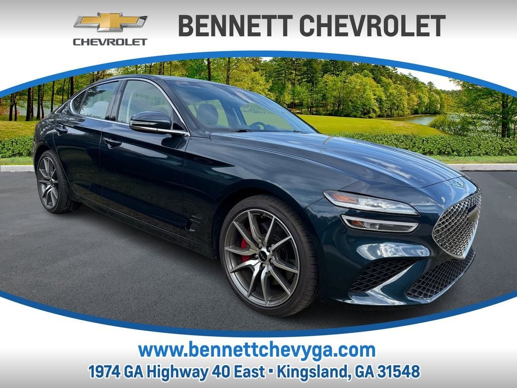 Recent Arrival!Bennett Chevrolet Buick is pumped up to offer this great 2025 Genesis G70 in Blue This vehicle has passed our comprehensive inspection and comes with the following Option Group 01, 4-Wheel Disc Brakes, 6 Speakers, ABS brakes, Air Conditioning, Alloy wheels, AM/FM radio: SiriusXM, Android Auto & Apple CarPlay, Anti-whiplash front head restraints, Auto High-beam Headlights, Auto-dimming Rear-View mirror, Automatic temperature control, Brake assist, Bumpers: body-color, Delay-off headlights, Driver door bin, Driver vanity mirror, Dual front impact airbags, Dual front side impact airbags, Electronic Stability Control, Emergency communication system: Genesis Connected Services, Exterior Parking Camera Rear, Four wheel independent suspension, Front anti-roll bar, Front Bucket Seats, Front Center Armrest, Front dual zone A/C, Front reading lights, Fully automatic headlights, Garage door transmitter: HomeLink, Heated door mirrors, Heated front seats, Heated Multi-Adjustable Front Bucket Seats, Illuminated entry, Knee airbag, Leather steering wheel, Leatherette Seating Surfaces, Low tire pressure warning, Navigation System, Occupant sensing airbag, Outside temperature display, Overhead airbag, Overhead console, Panic alarm, Passenger door bin, Passenger vanity mirror, Power door mirrors, Power driver seat, Power passenger seat, Power steering, Power windows, Radio: AM/FM/SiriusXM/HD Audio System, Rear anti-roll bar, Rear reading lights, Rear seat center armrest, Rear side impact airbag, Rear window defroster, Remote keyless entry, Security system, Speed control, Speed-Sensitive Wipers, Split folding rear seat, Steering wheel mounted audio controls, Tachometer, Telescoping steering wheel, Traction control, Trip computer, Turn signal indicator mirrors, Variably intermittent wipers, and Wheels: 19 x 8.0J Fr & 19 x 8.5J Rr Alloy;