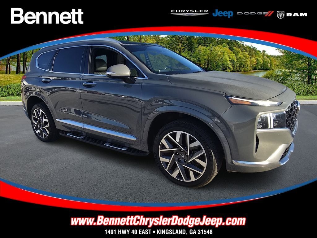 Bennett Chrysler Jeep Dodge Ram is pleased to offer this good-looking 2023 Hyundai Santa Fe in Hampton Gray This vehicle has passed our comprehensive inspection and comes with the following Cargo Package (Cargo Net, Cargo Tray, and First Aid Kit), Option Group 01, AWD, Black Leather, 12 Speakers, 4-Wheel Disc Brakes, ABS brakes, Air Conditioning, Alloy wheels, AM/FM radio: SiriusXM, Apple CarPlay & Android Auto, Auto High-beam Headlights, Auto-dimming Rear-View mirror, Automatic temperature control, Axle Ratio: 3.316, Brake assist, Bumper Applique, Bumpers: body-color, Carpeted Floor Mats, Delay-off headlights, Driver door bin, Driver vanity mirror, Dual front impact airbags, Dual front side impact airbags, Electronic Stability Control, Emergency communication system, Exterior Parking Camera Rear, Four wheel independent suspension, Front anti-roll bar, Front Bucket Seats, Front Center Armrest, Front dual zone A/C, Front reading lights, Fully automatic headlights, Garage door transmitter: HomeLink, harman/kardon® Speakers, Heads-Up Display, Heated & Ventilated Front Bucket Seats, Heated door mirrors, Heated front seats, Heated rear seats, Heated steering wheel, Illuminated entry, Leather steering wheel, Low tire pressure warning, Memory seat, Navigation System, Occupant sensing airbag, Outside temperature display, Overhead airbag, Overhead console, Panic alarm, Passenger door bin, Passenger vanity mirror, Power door mirrors, Power driver seat, Power Liftgate, Power moonroof, Power passenger seat, Power steering, Power windows, Quilted Premium Nappa Leather Seat Trim, Radio: AM/FM Harman Kardon Display Audio, Rain sensing wipers, Rear anti-roll bar, Rear seat center armrest, Rear window defroster, Rear window wiper, Remote keyless entry, Security system, Speed control, Speed-sensing steering, Split folding rear seat, Spoiler, Steering wheel mounted audio controls, Tachometer, Telescoping steering wheel, Tilt steering wheel, Traction control, Trip computer, Turn signal indicator mirrors, Variably intermittent wipers, Ventilated front seats, and Wheels: 20" x 8.0J Alloy; AWD, Black Leather.