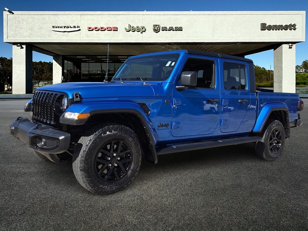 Bennett Chrysler Jeep Dodge Ram is pumped up to offer this good-looking 2022 Jeep Gladiator in Hydro Blue Pearlcoat This vehicle has passed our comprehensive inspection and comes with the following Auxiliary Switch Group, Convenience Group (Universal Garage Door Opener), MOPAR Splash Guards - Vehicle Set, Quick Order Package 24T Altitude (Black 3-Piece Hard Top, Leather Wrapped Steering Wheel, Mold In Color Bumper w/Gloss Black, Power Tailgate Lock, and Wheels: 17" x 7.5" Gloss Black Aluminum), 110 MPH Vehicle Max Speed Calibration, 3.73 Rear Axle Ratio, 4-Wheel Disc Brakes, 8 Speakers, ABS brakes, Air Conditioning, AM/FM radio, Apple CarPlay, Apple CarPlay/Android Auto, Brake assist, Cloth Low-Back Bucket Seats, Compass, Corning Gorilla Glass, Delay-off headlights, Driver door bin, Driver vanity mirror, Dual front impact airbags, Dual front side impact airbags, Electronic Stability Control, Emergency communication system: SiriusXM Guardian, Front anti-roll bar, Front Bucket Seats, Front Center Armrest w/Storage, Front fog lights, Front reading lights, Google Android Auto, GPS Antenna Input, Integrated Center Stack Radio, Integrated roll-over protection, Integrated Voice Command w/Bluetooth, Low tire pressure warning, MOPAR All-Weather Slush Mats, Mopar Black Tubular Side Steps, MOPAR Spray In Bedliner, Normal Duty Suspension, Occupant sensing airbag, Outside temperature display, ParkView Rear Back-Up Camera, Passenger door bin, Passenger vanity mirror, Power steering, Radio data system, Radio: Uconnect 4 w/7" Display, Rear anti-roll bar, Rear reading lights, Roll-Up Tonneau Cover, Speed control, Split folding rear seat, Steering wheel mounted audio controls, Tachometer, Telescoping steering wheel, Tilt steering wheel, Traction control, Trip computer, USB Host Flip, Variably intermittent wipers, and Wheels: 17" x 7.5" Black Steel Styled;
