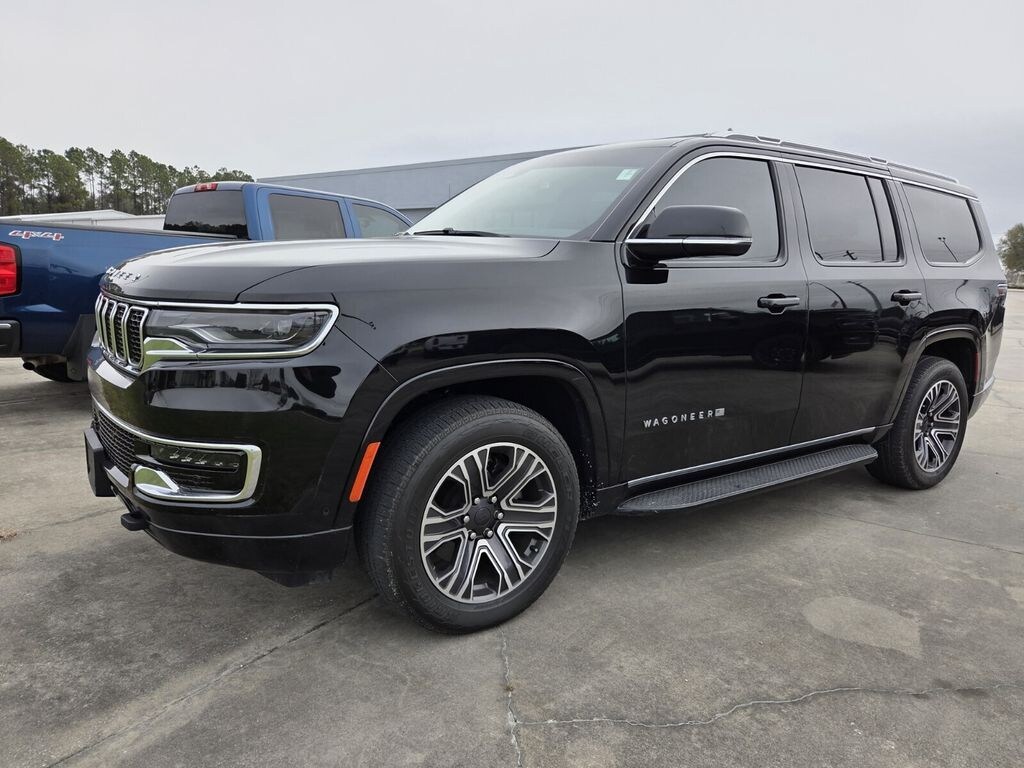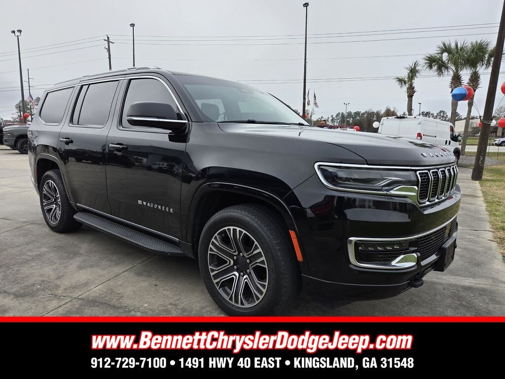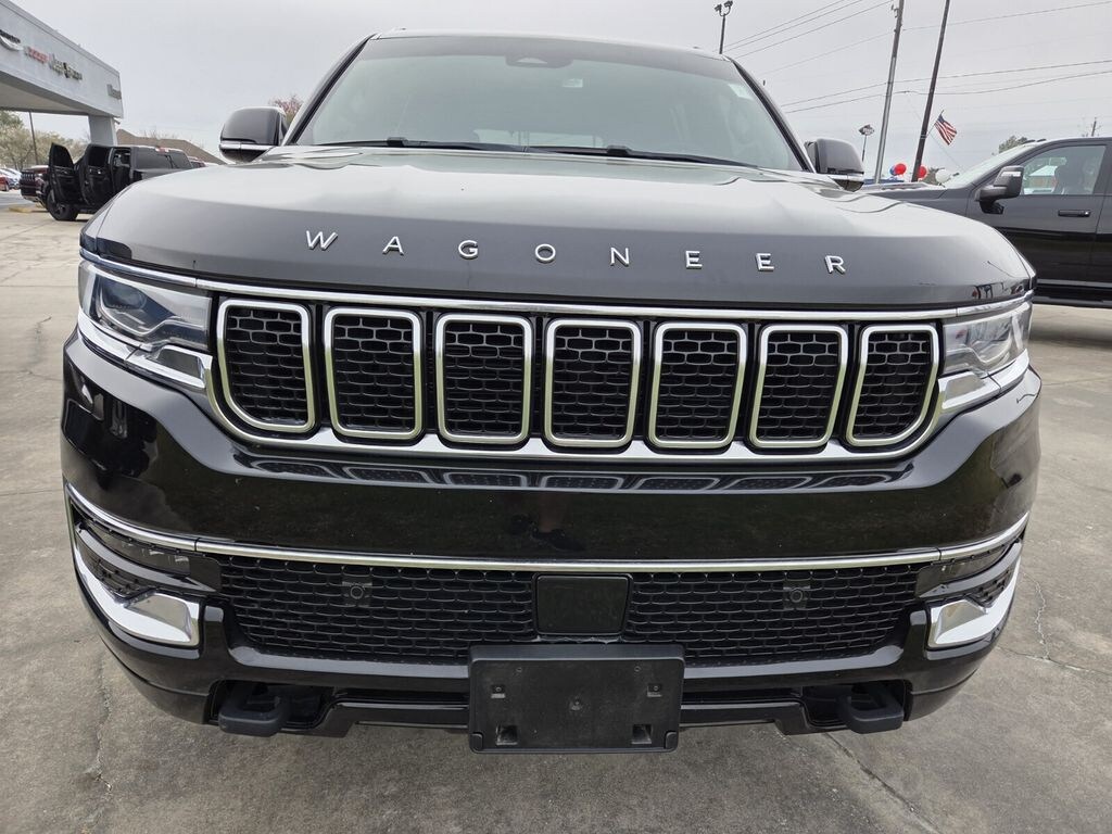 Bennett Chrysler Jeep Dodge Ram is proud to offer this beautiful 2024 Jeep Wagoneer in Diamond Black Crystal Pearlcoat This vehicle has passed our comprehensive inspection and comes with the following HD Trailer Tow Package (2 Speed On Demand Transfer Case, Black Tow Hooks, Electronic Rear Limited Slip Differential, Heavy-Duty Engine Cooling, Removable Rear Tow Hook, Selec-Speed Control, Trailer Brake Control, and Trailer Hitch Zoom), Premium Group I (3 Panel Sunroof, Adjustable Roof Rail Crossbars, Cargo Cover, Reversible Carpet/Vinyl Cargo Mat, and Wheels: 20" x 9.0" Premium 2 Aluminum), Quick Order Package 25E, 10 Speakers, 3rd row seats: bench, 4-Wheel Disc Brakes, ABS brakes, Adjustable pedals, Air Conditioning, Alloy wheels, AM/FM radio: SiriusXM with 360L, Anti-whiplash front head restraints, Apple CarPlay/Android Auto, Audio memory, Auto-dimming door mirrors, Auto-dimming Rear-View mirror, Auto-leveling suspension, Automatic temperature control, Brake assist, Bumpers: body-color, Compass, Delay-off headlights, Driver door bin, Driver vanity mirror, Driver's Seat Mounted Armrest, Dual front impact airbags, Dual front side impact airbags, Electronic Stability Control, Emergency communication system: Wagoneer Connect, Exterior Parking Camera Rear, Four wheel independent suspension, Front anti-roll bar, Front Bucket Seats, Front Center Armrest w/Storage, Front dual zone A/C, Front fog lights, Front reading lights, Fully automatic headlights, Garage door transmitter, Heated door mirrors, Heated front seats, Heated steering wheel, Illuminated entry, Knee airbag, Leather Trimmed Bucket Seats, Low tire pressure warning, Memory seat, Navigation System, Normal Duty Suspension, Occupant sensing airbag, Outside temperature display, Overhead airbag, Overhead console, Panic alarm, Passenger door bin, Passenger seat mounted armrest, Passenger vanity mirror, Pedal memory, Power adjustable front head restraints, Power door mirrors, Power driver seat, Power Liftgate, Power passenger seat, Power steering, Power windows, Radio data system, Radio: Uconnect 5 Nav w/10.1" Display, Rear air conditioning, Rear anti-roll bar, Rear dual zone A/C, Rear reading lights, Rear seat center armrest, Rear window defroster, Rear window wiper, Reclining 3rd row seat, Remote keyless entry, Security system, Speed control, Speed-sensing steering, Speed-Sensitive Wipers, Split folding rear seat, Steering wheel memory, Steering wheel mounted audio controls, Tachometer, Telescoping steering wheel, Tilt steering wheel, Traction control, Trip computer, Turn signal indicator mirrors, Variably intermittent wipers, Ventilated front seats, Voltmeter, and Wheels: 18" x 8.0" Aluminum Base Finish;
