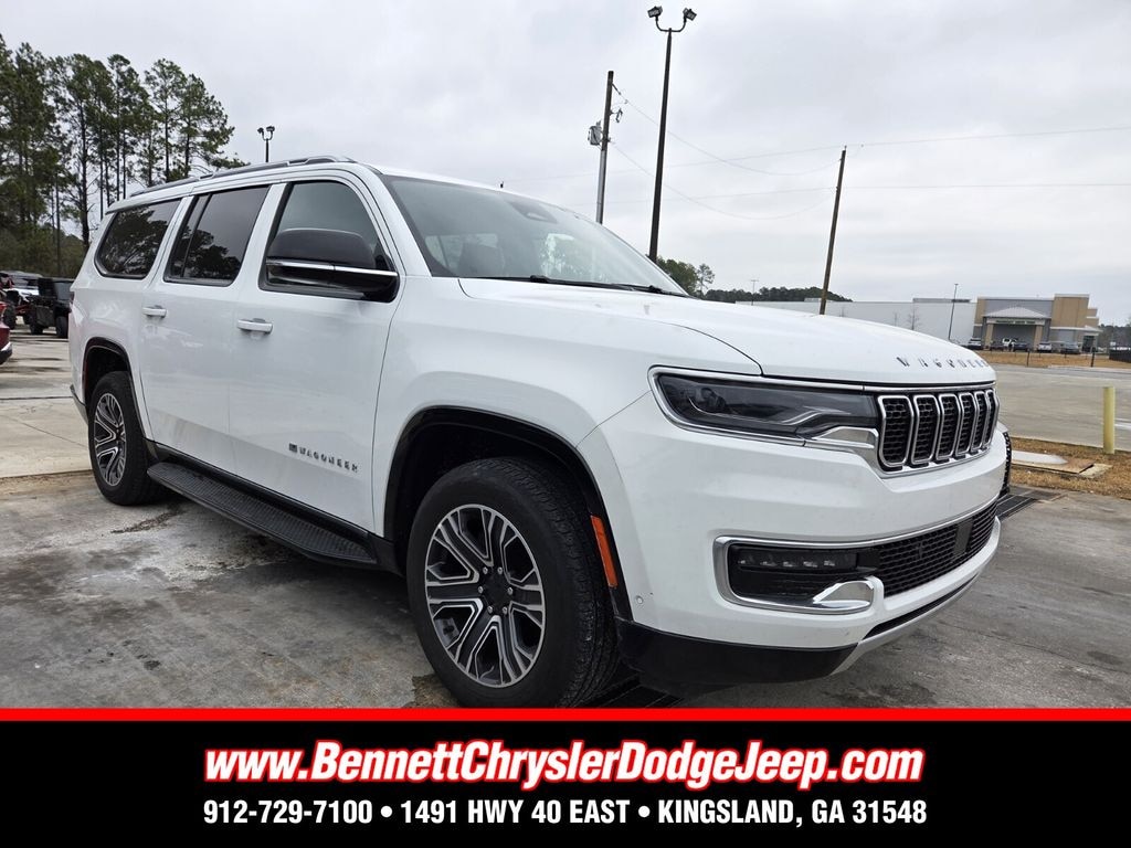 Bennett Chrysler Jeep Dodge Ram is very proud to offer this terrific-looking 2024 Jeep Wagoneer L in Bright White Clearcoat This vehicle has passed our comprehensive inspection and comes with the following Flexible Seating Group (7-Passenger Seating, Floor Console w/Cupholder, and Power Tip/Slide Recline 2nd Row Buckets), Quick Order Package 25J, 10 Speakers, 3.55 Rear Axle Ratio, 3rd row seats: bench, 4-Wheel Disc Brakes, ABS brakes, Adjustable pedals, Air Conditioning, Alloy wheels, AM/FM radio: SiriusXM with 360L, Anti-whiplash front head restraints, Apple CarPlay/Android Auto, Audio memory, Auto-dimming door mirrors, Auto-dimming Rear-View mirror, Auto-leveling suspension, Automatic temperature control, Brake assist, Bumpers: body-color, Compass, Delay-off headlights, Driver door bin, Driver vanity mirror, Driver's Seat Mounted Armrest, Dual front impact airbags, Dual front side impact airbags, Electronic Stability Control, Emergency communication system: Wagoneer Connect, Exterior Parking Camera Rear, Four wheel independent suspension, Front anti-roll bar, Front Bucket Seats, Front Center Armrest w/Storage, Front dual zone A/C, Front fog lights, Front reading lights, Fully automatic headlights, Garage door transmitter, Genuine wood console insert, Genuine wood dashboard insert, Genuine wood door panel insert, Heated door mirrors, Heated front seats, Heated steering wheel, Illuminated entry, Knee airbag, Leather Trimmed Bucket Seats, Low tire pressure warning, Memory seat, Navigation System, Normal Duty Suspension, Occupant sensing airbag, Outside temperature display, Overhead airbag, Overhead console, Panic alarm, Passenger door bin, Passenger seat mounted armrest, Passenger vanity mirror, Pedal memory, Power adjustable front head restraints, Power door mirrors, Power driver seat, Power Liftgate, Power passenger seat, Power steering, Power windows, Radio data system, Radio: Uconnect 5 Nav w/10.1" Display, Rain sensing wipers, Rear air conditioning, Rear anti-roll bar, Rear reading lights, Rear seat center armrest, Rear window defroster, Rear window wiper, Reclining 3rd row seat, Remote keyless entry, Security system, Speed control, Speed-sensing steering, Speed-Sensitive Wipers, Split folding rear seat, Steering wheel memory, Steering wheel mounted audio controls, Tachometer, Telescoping steering wheel, Tilt steering wheel, Traction control, Trip computer, Turn signal indicator mirrors, Variably intermittent wipers, Ventilated front seats, Voltmeter, and Wheels: 20" x 9.0" Premium 2 Aluminum;